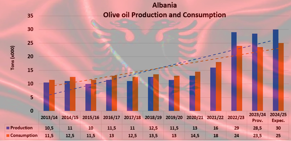 In summary, while Albania shows growth in olive production, challenges such as structural fragmentation, low yield per tree, and the imperative to enhance quality for export remain pivotal considerations for the development of the olive industry in the country.