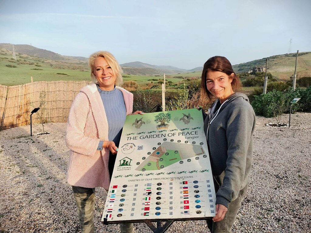 Within the SFT Animal Sanctuary — the largest animal sanctuary in Morocco, founded by Salima “Sally” Kadaoui in 2013 — the first Garden of Peace on African soil is born. A symbolic and real place, where olive trees, rescued animals, and people come together in an embrace of rebirth and compassion. The result of a collaboration between The Garden of Peace and SFT, this garden embodies a new vision of the world: a place where every act of kindness becomes a revolutionary gesture, and love for animals transforms into concrete action for peace.